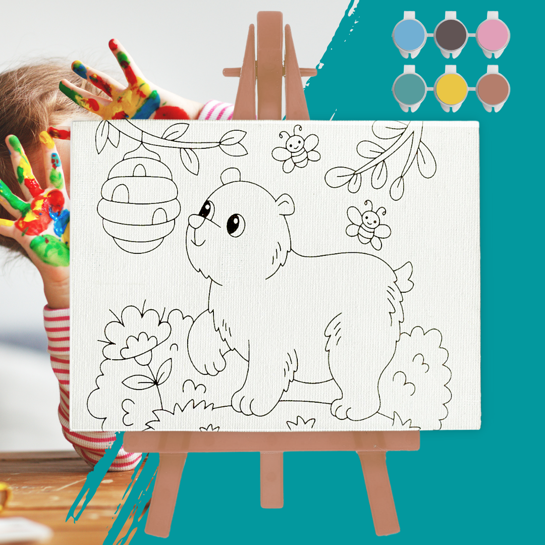 - Płótno z Nadrukiem: W zestawie znajduje się płótno naciągnięte na deskę (panel) o wymiarach 15x10 cm. Płótno posiada gotowy nadruk, który stanowi wspaniałą inspirację do malowania. Jest to również świetny sposób, aby zacząć twórczą podróż.