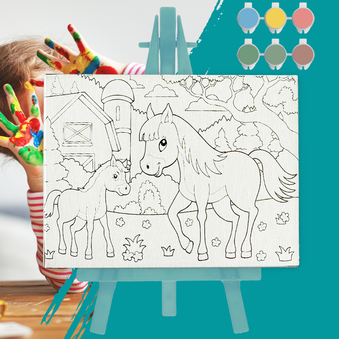 - Płótno z Nadrukiem: W zestawie znajduje się płótno naciągnięte na deskę (panel) o wymiarach 15x10 cm. Płótno posiada gotowy nadruk, który stanowi wspaniałą inspirację do malowania. Jest to również świetny sposób, aby zacząć twórczą podróż.