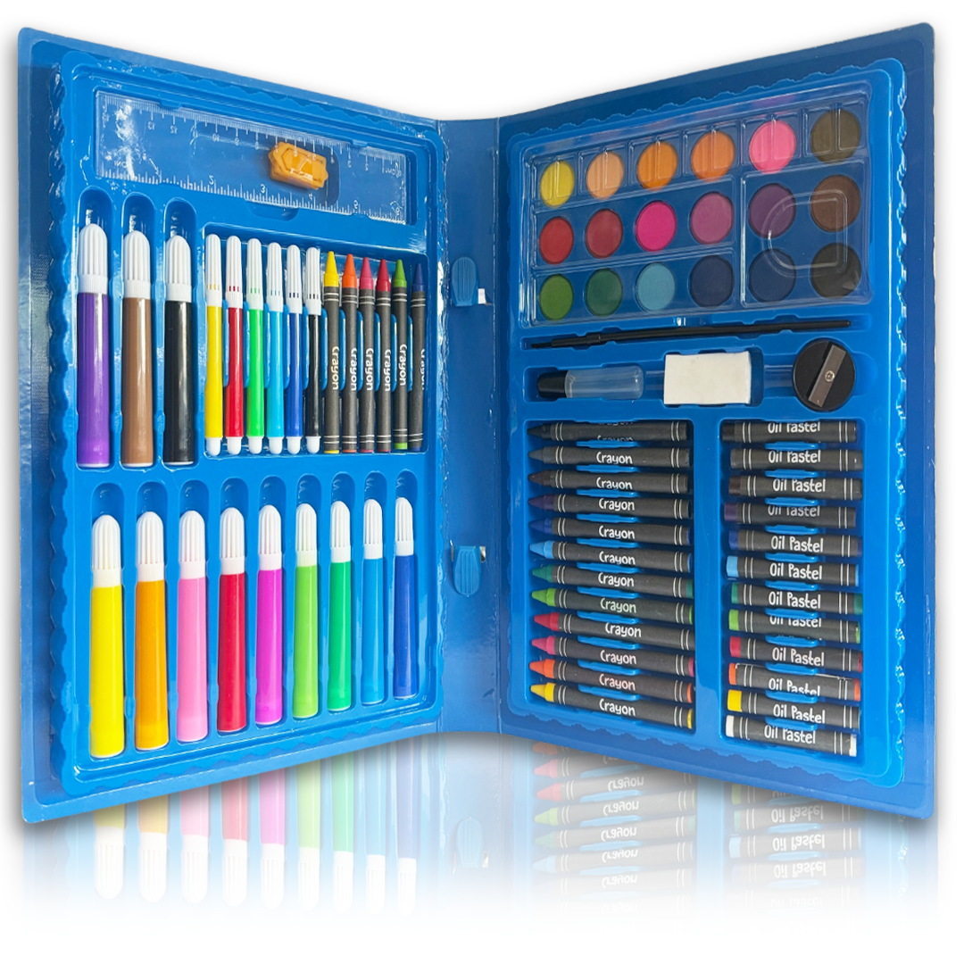 Zestaw Malarski dla Dzieci – 80 Elementów w Niebieskiej Walizce