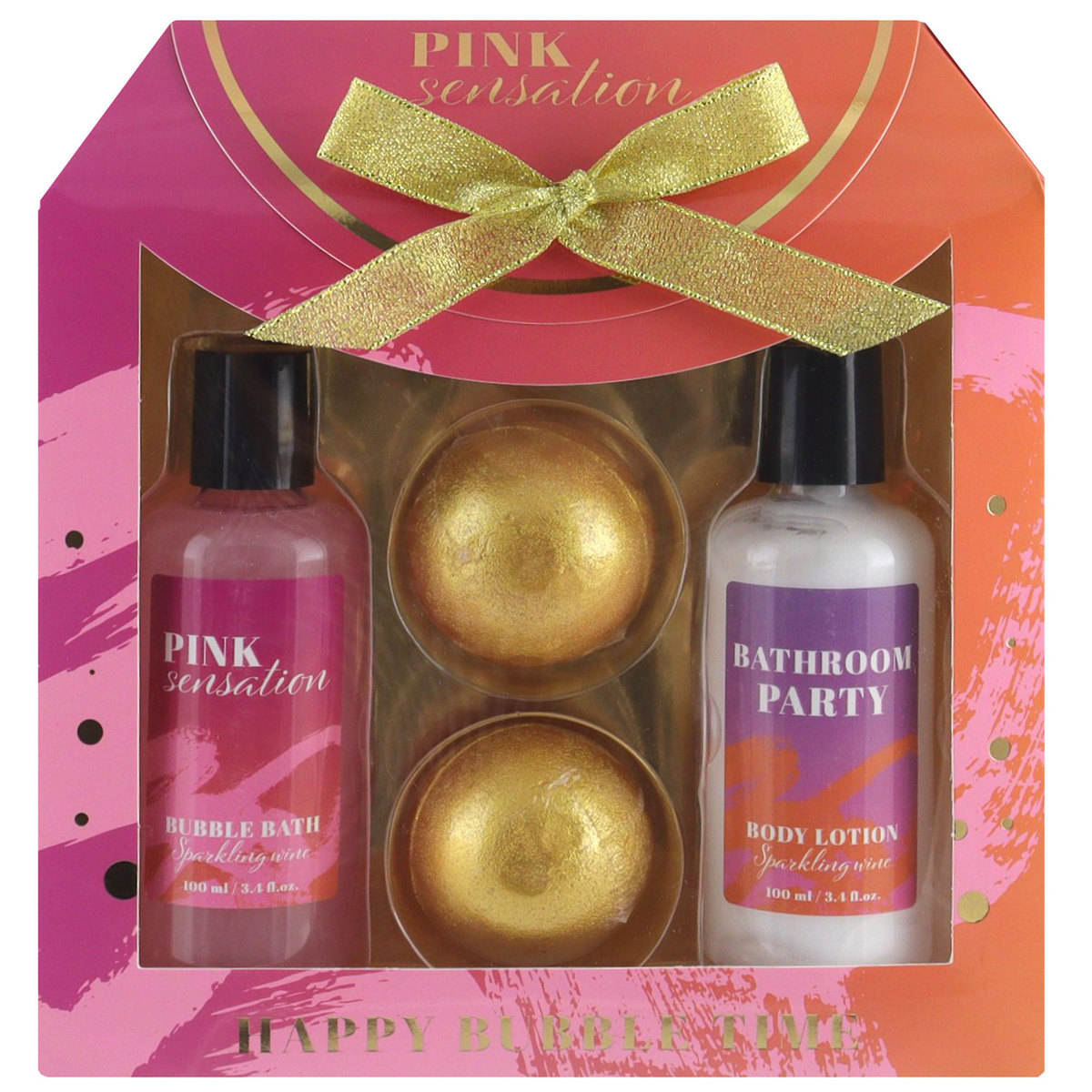 Zestaw Upominkowy o Zapachu Szampana – Balsam, Żel i Złote Kule do Kąpieli